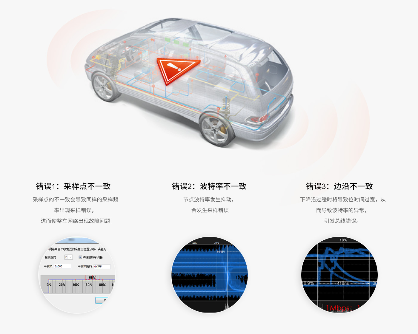 新能源汽車主機廠和零部件企業在CANDT一致性測試后,對于測試報告中顯示測試不通過的問題,可以用CANScope進行故障定位和排查,加快CAN總線穩定的研發速度。