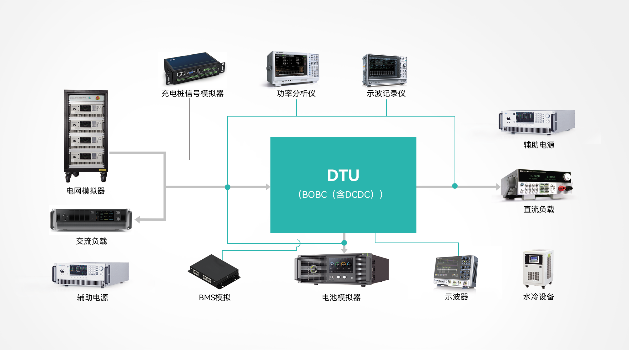 OBC/BOBC 產(chǎn)品車載充電機主要負責(zé)將交流樁電量轉(zhuǎn)化為直流電對電池進行充電,并且產(chǎn)品中會帶有DC-DC轉(zhuǎn)化器,將電池電量轉(zhuǎn)化成輔電為車上部件供電。MPT 智能化OBC 測試系統(tǒng)可以對OBC/BOBC/DC-DC 等產(chǎn)品進行自動化測試,實現(xiàn)各項功能及電性能指標(biāo)的測試驗證。