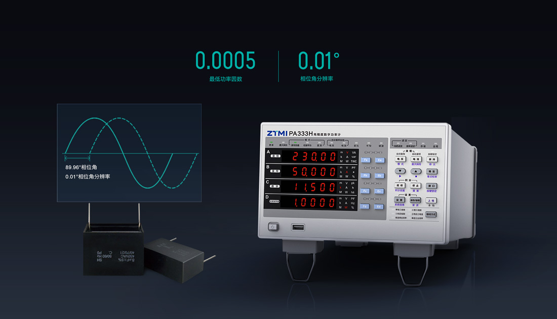 PA300系列數(shù)字功率計(jì)采用100MHz同步時(shí)鐘,相角分辨率高達(dá)0.01°。即使在低至0.0005的功率因數(shù)下仍能保證0.1%的高測量精度。