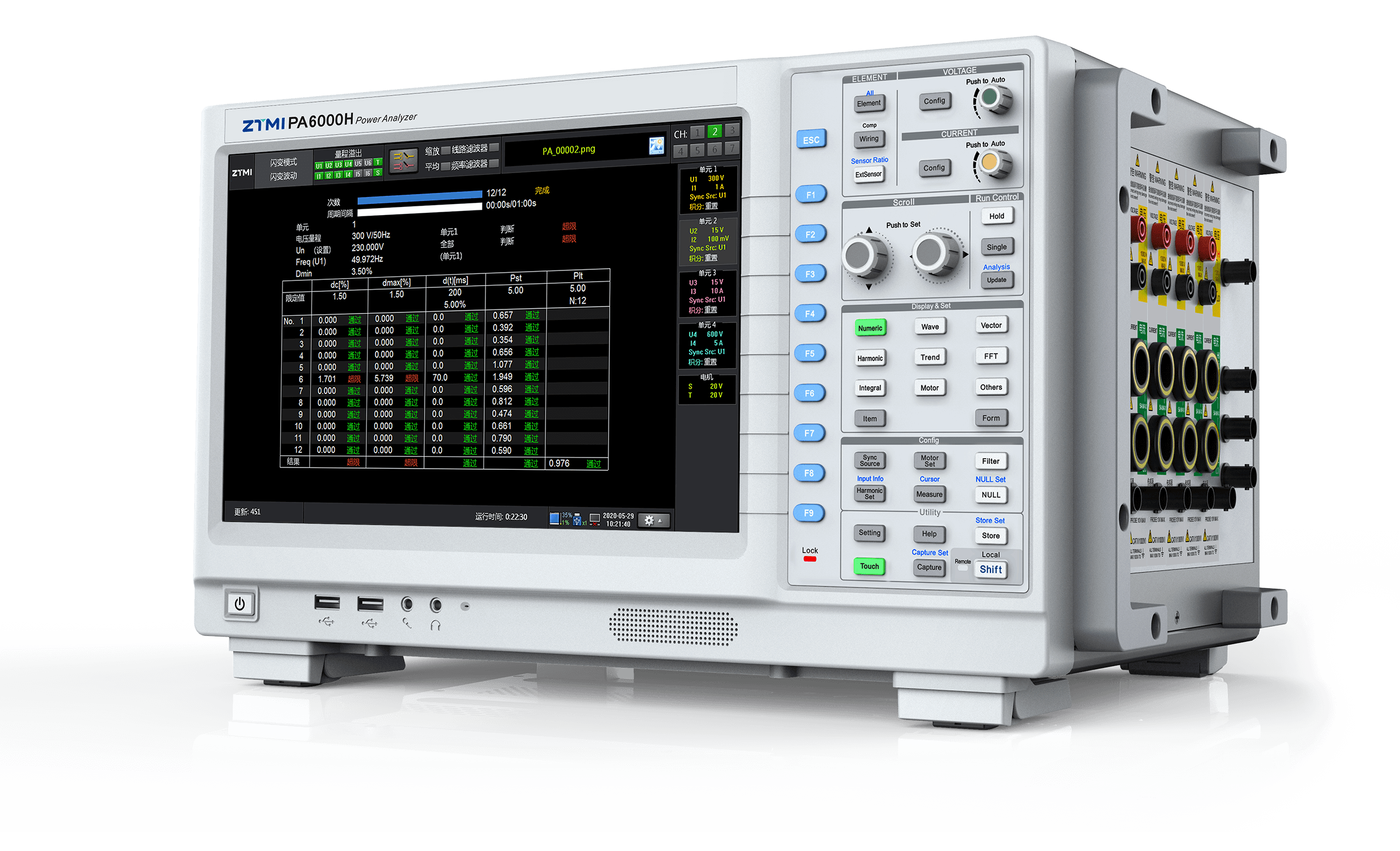 PA6000H功率分析儀帶寬為DC/0.1Hz‐2MHz,由于采用了PLL源倍頻技術,可實現速度更快、動態范圍更廣的諧波測量,在諧波模式下可實現對電壓、電流基波、功率、相位、諧波成分和總諧波失真因數(THD)的準確測試。