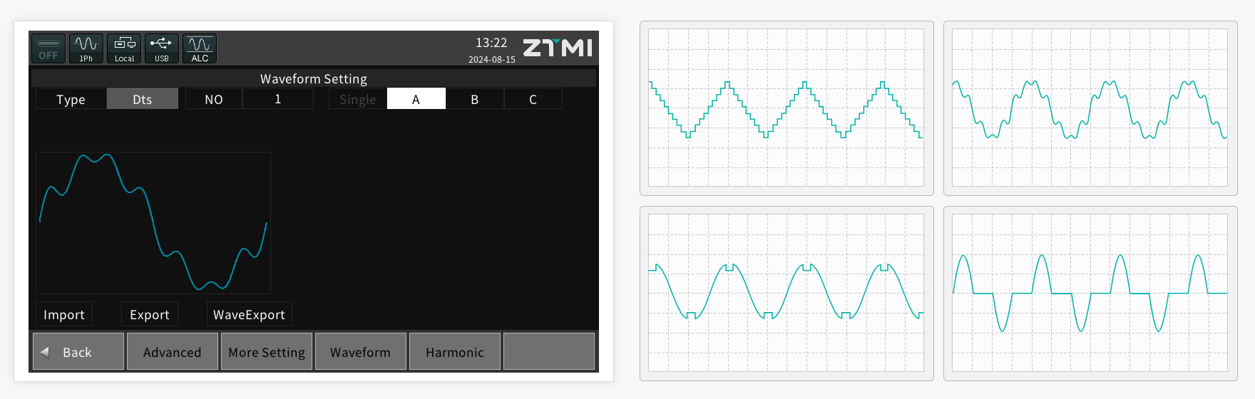 內置波形庫含40余種常用測試波形,便捷調用,并可添加自定義波形,可模擬各類偶發異常電網情況。