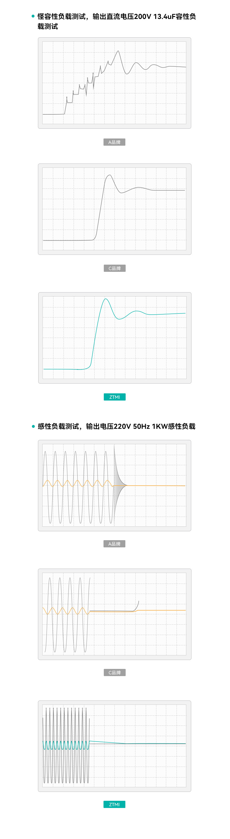 通過優秀的硬件系統設計,產品針對高容性及感性負載均有更優秀的帶載能力。