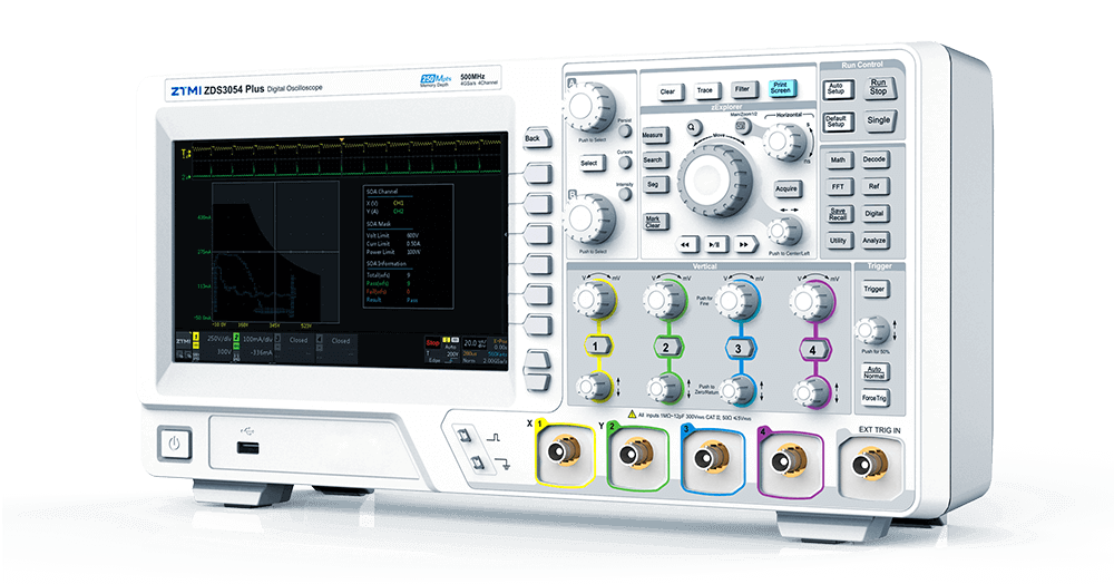 PFC MOS管開關損耗測試是電源調試中的難點,由于不同周期的電壓和電流波形都不相同,功率損耗的準確評估也更依賴長時間高采樣率的波形捕獲,因此存儲深度和功率損耗運算原始點數成為開關損耗準確與否的關鍵。ZDS3024示波器標配250M存儲深度,并通過全硬件加速處理優化,可精準量化開關器件的功率損耗。