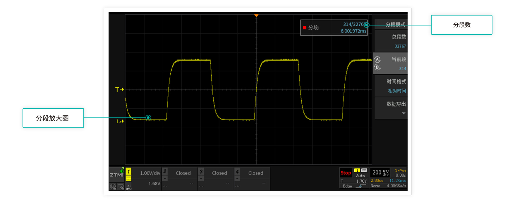 存儲深度等于采樣率乘以采樣時間,512M大存儲深度,長時間捕獲波形,依然不會出現(xiàn)波形失真。