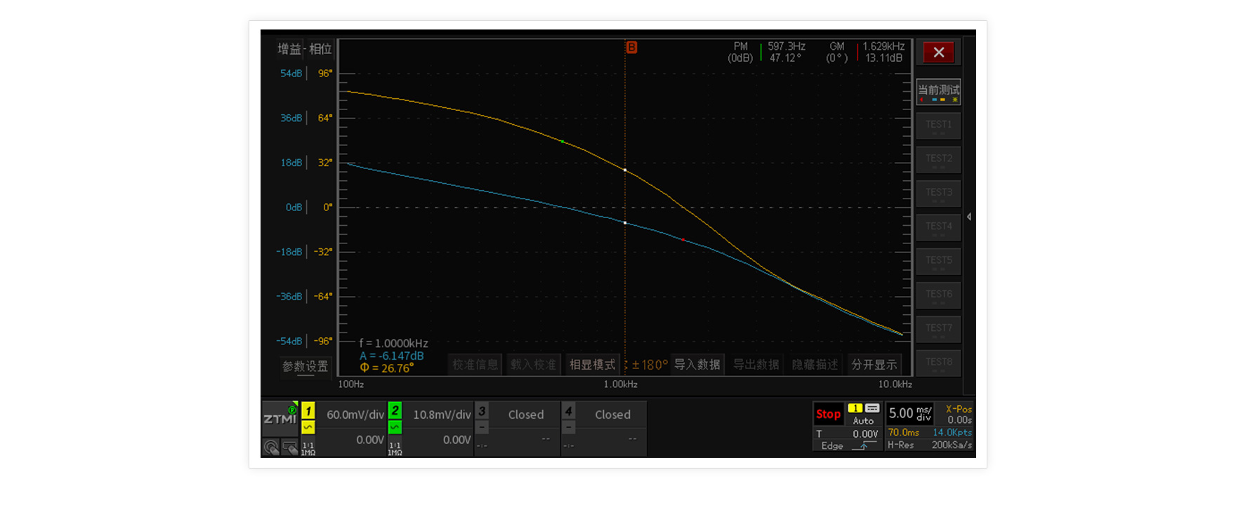 致遠電子 ZDS4000系列示波器支持環(huán)路測試分析軟件。相對于幾十萬的專業(yè)環(huán)路分析儀器,內(nèi)嵌的環(huán)路測試分析軟件不僅有完善的環(huán)路測試方法和精準的測量精度, 并且對測試操作和用戶體驗進行了創(chuàng)新性地設(shè)計。