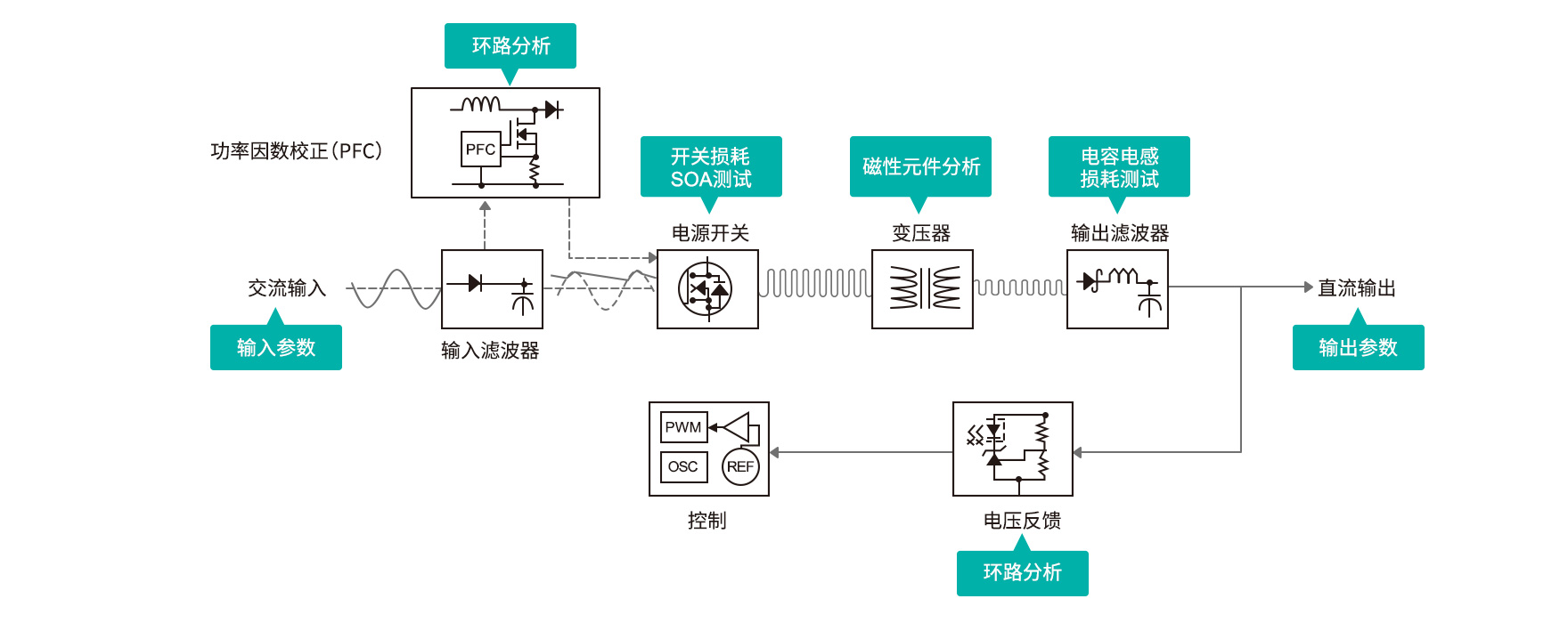 ZDS5054A電源分析功能涵蓋了輸入輸出特性測試,MOSFET、磁性元件、電容、電感等器件分析,調制波形測試等功能,全方位評測電源可靠性。
