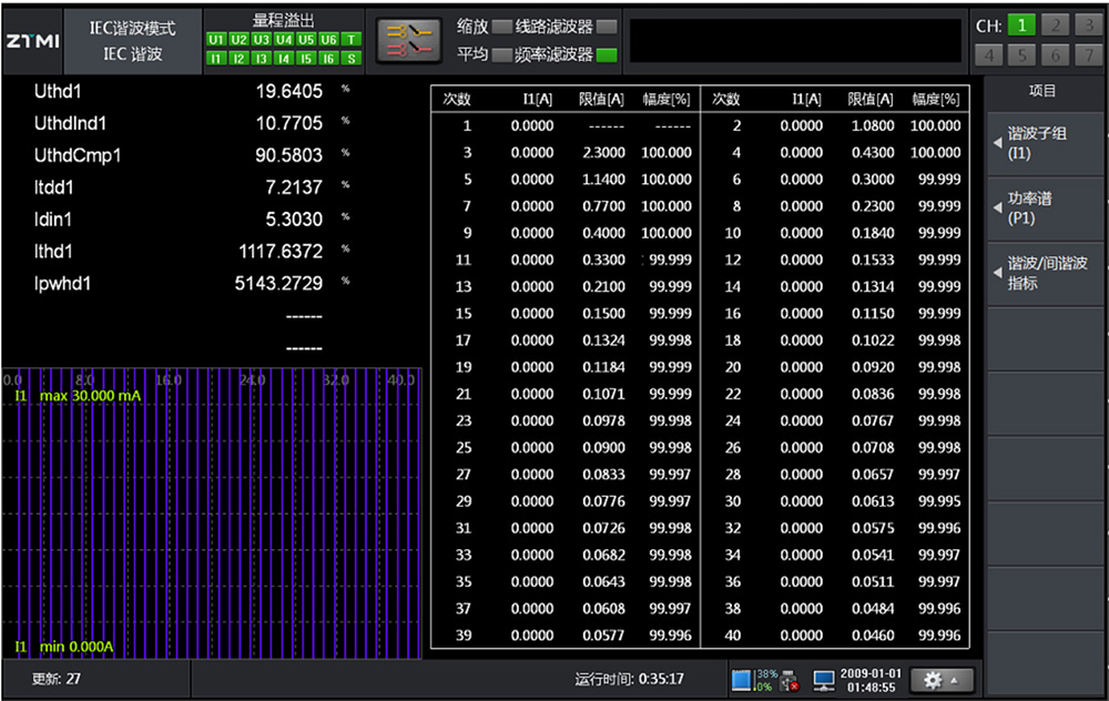 PA系列功率分析儀提供常規(guī)諧波、諧波、IEC諧波三種模式。