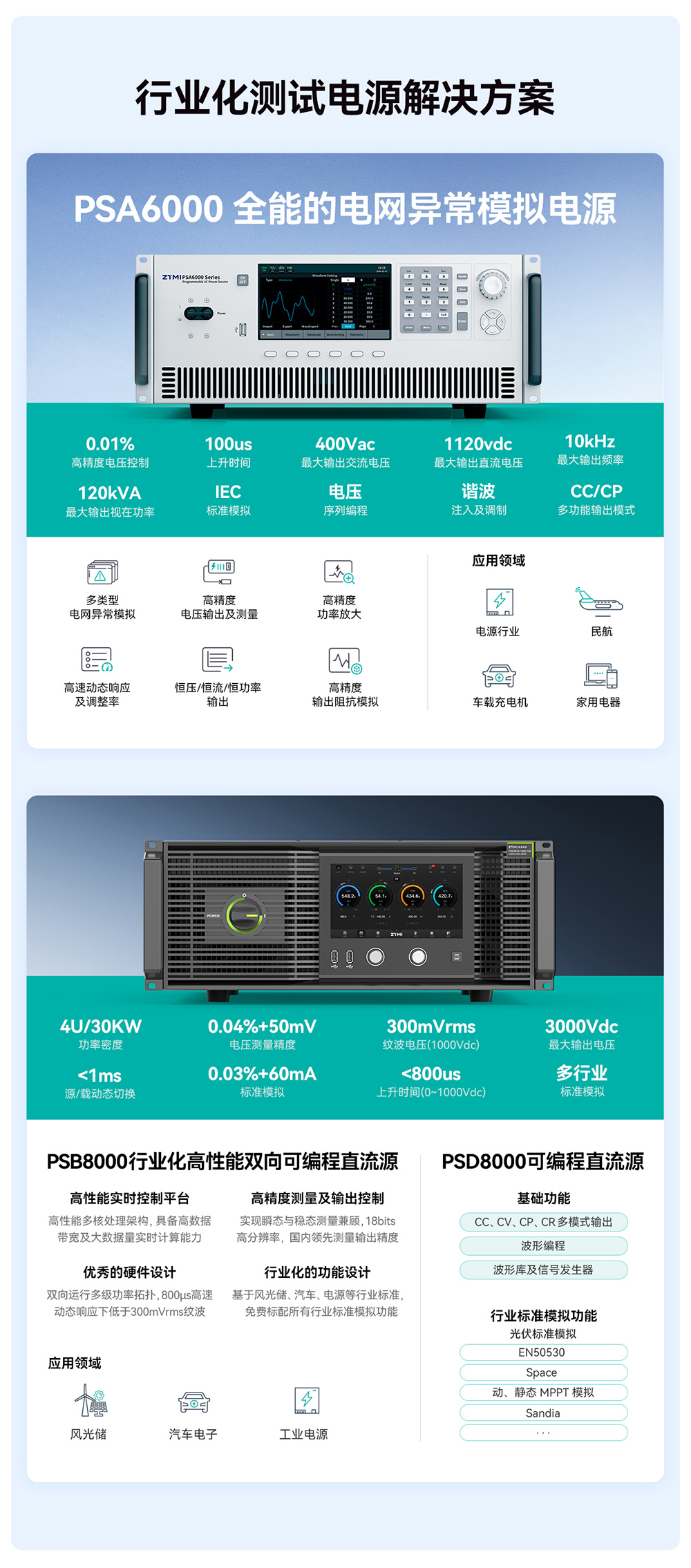 光伏行業(yè)作為可再生能源的重要組成部分,近年來發(fā)展迅猛。隨著光伏組件、逆變器、儲(chǔ)能系統(tǒng)等技術(shù)的不斷升級(jí),對(duì)測(cè)試設(shè)備的要求也越來越高。測(cè)試電源在光伏產(chǎn)品的研發(fā)、生產(chǎn)、認(rèn)證等環(huán)節(jié)發(fā)揮著關(guān)鍵作用。