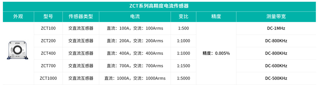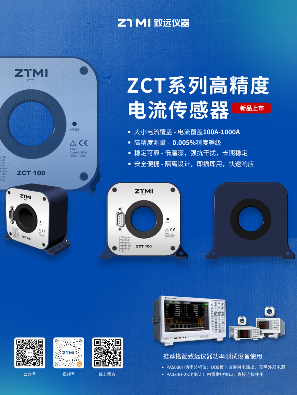 為滿足市場對高精度大電流測量的需求,致遠儀器推出全新ZCT系列高精度電流傳感器,現(xiàn)已正式上市,ZCT系列包括ZCT100、ZCT200、ZCT400、ZCT700、ZCT1000五個型號,滿足不同功率等級的測試需求。