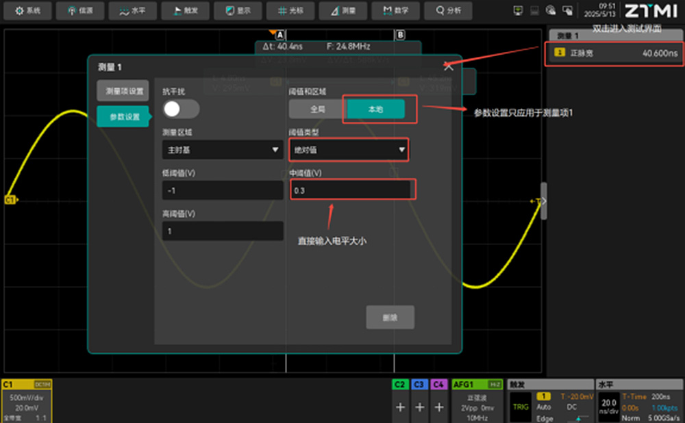 ZUS示波器獨立閾值設置功能詳解:簡化操作流程,提升脈寬測量效率