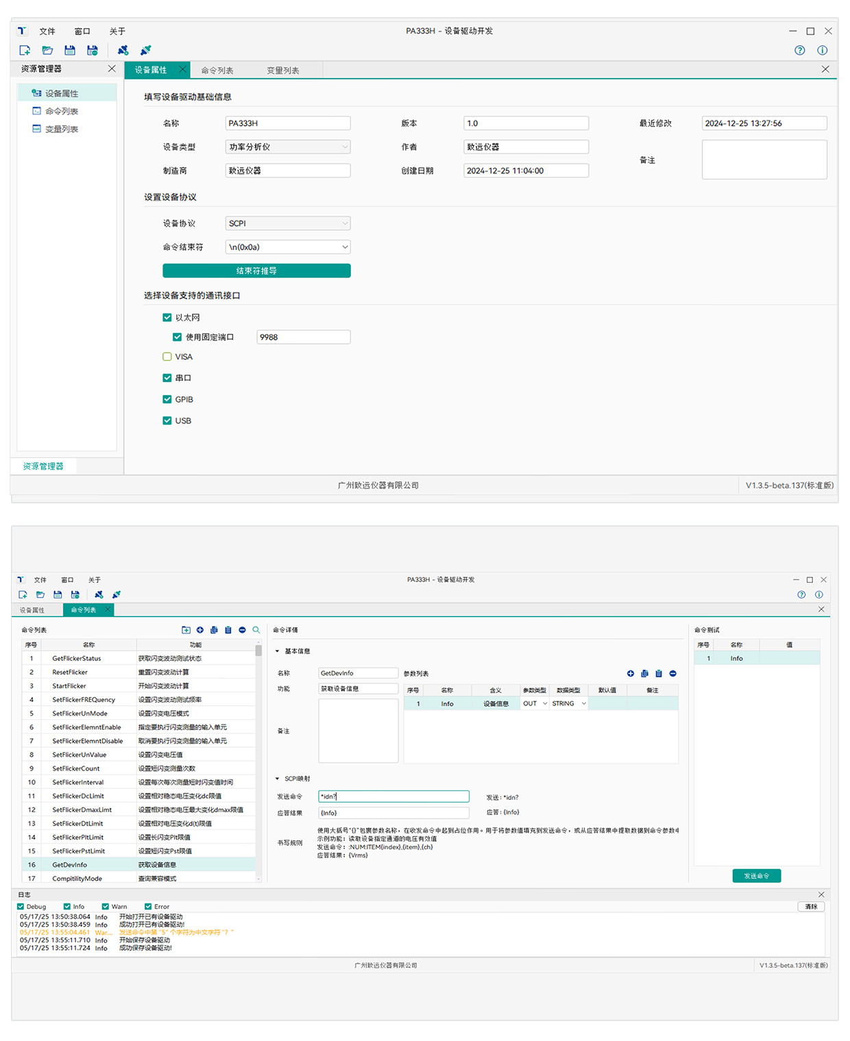 TDS提供獨立的設備驅動開發軟件,同樣使用可視化方式將SCPI、Modbus設備通信協議,轉換為測試程序使用的標準命令接口,以封裝不同設備通信協議,實現硬件設備快速替換與擴展。