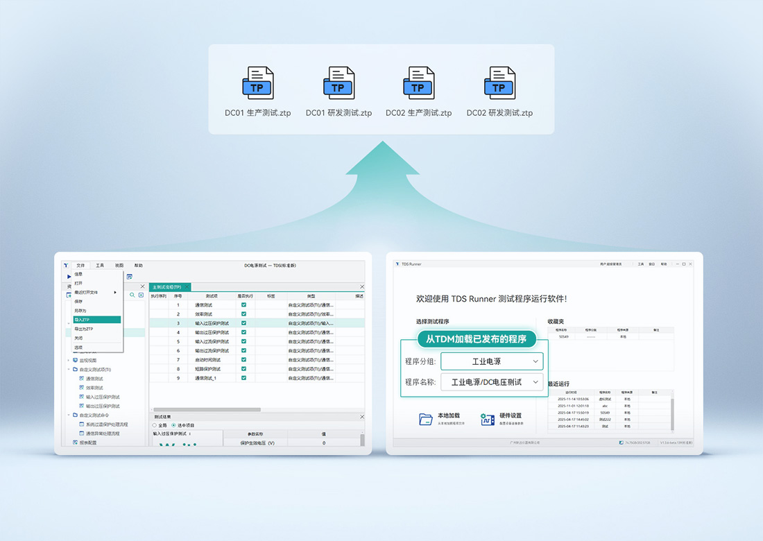 “TDS智能化測試分析軟件”是廣州致遠儀器有限公司憑借自身在測量儀器,電力電子測試測量領域的深入理解與長久積累開發的一套" 產品自動化測試的系統級解決方案”。TDS智能測試分析軟件,由測試開發工具“TDS Code”、測試執行軟件“TDS Runner”與測試管理系統“TDM”三部分組成,覆蓋測試開發、運行與管理的全過程,實現數據與工程的管理和互通。即是一款高自由度、高擴展性的開發利器,也是一套系統化的管理工具。
